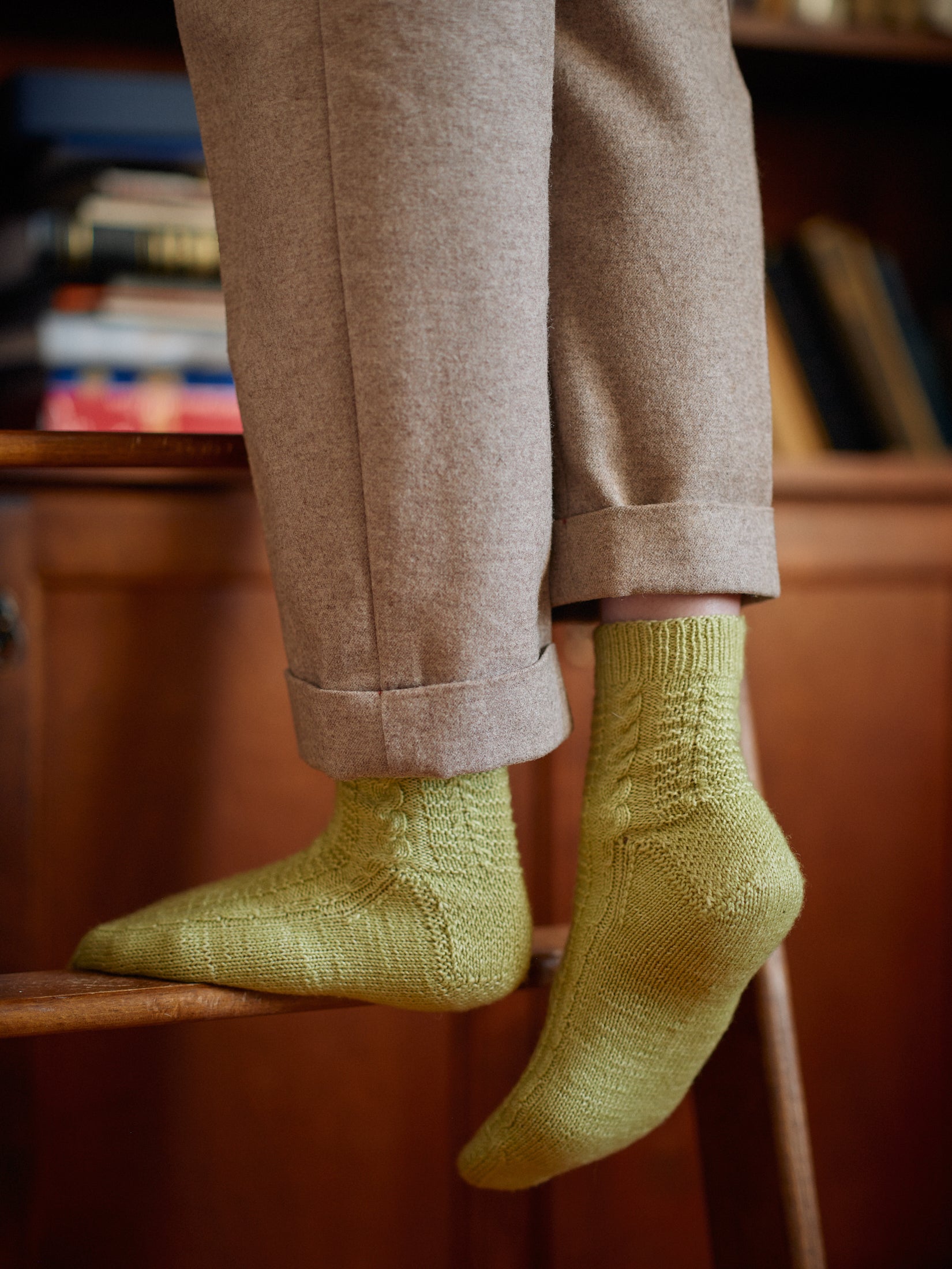 - 11 knitting patterns: 5 sweaters, 2 cardigans, 1 vest, 1 shawl, 1 hat and 1 pair of socks.