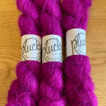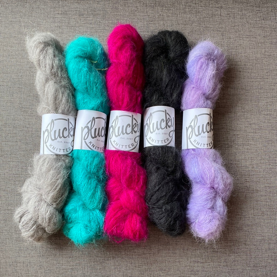 This blend is a great alternative to those who are sensitive to mohair, but still would like that fluff in their knitwear. Because this delicate fiber comes from a Suri Baby Alpaca, it is butter soft, silky, and light as a feather! Although alpaca is not a strong fiber on its own, the generous silk percentage in this base gives this yarn plenty of strength for various knit and crochet items. Great for hats, neckwear, and garments.